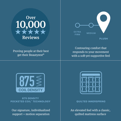 Discover the difference between sleep and Beautyrest® with our signature individualized support + motion separation, contouring pressure relief, and a classic, quilted surface.